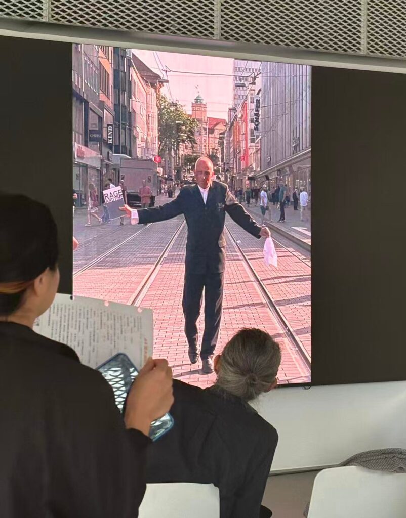 With great pleasure I can announce that my performance video THIS UNBEARABLE LIGHTNESS OF RAGE AND TIME AND HOPE [2023] is featuring in Program 2 of Cine + Perfo presentation [ and starts at 6.00 mins – play it loud ] – untill February 2025. Performance on traffic island during rush hour, Buenos Aires 2023. 2.59 mins. color/sound. Camera: Eva Dabara. Edit: Bob Schoo.
