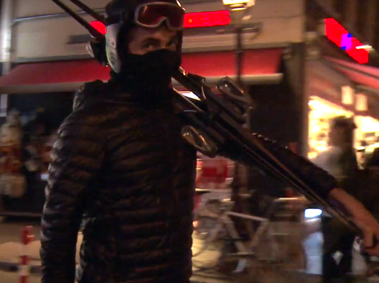 The tense atmosphere must be calmed by the next artist – I see a skier dressed in black slowly walking through the courtyard from Lāčplēša Street. Following the image, the audience is led into the space, where Dutch artist Peter Baren awaits and greeting us with a hushed: m e m e n t o m o r i