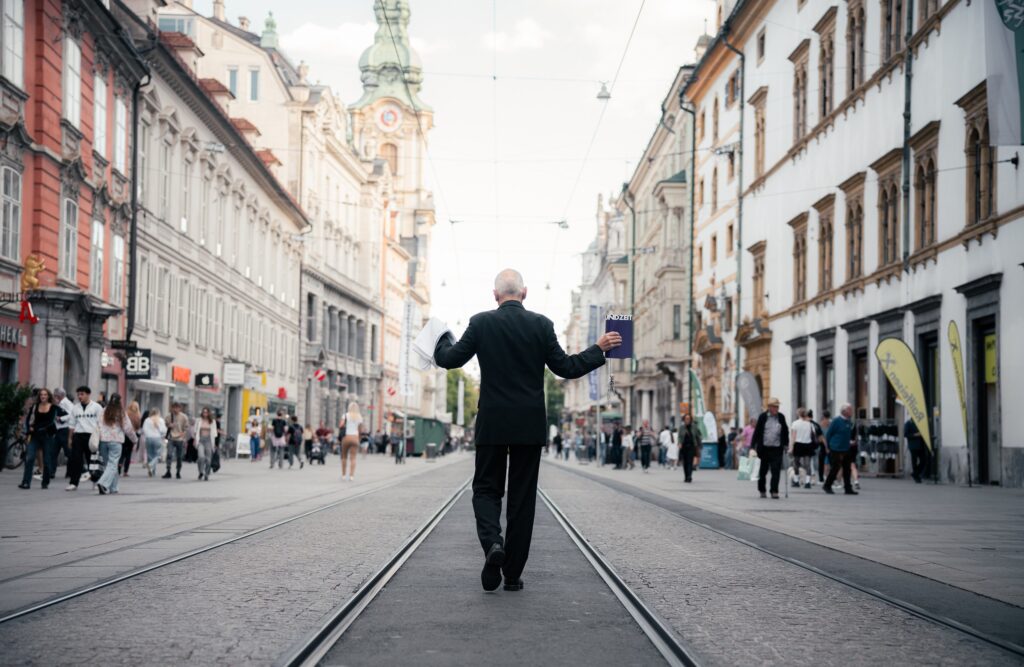 MANTRA MANTRA [RAGE AND TIME AND HOPE]. Durational walk around the city center of Graz. Austria. 17 September.
