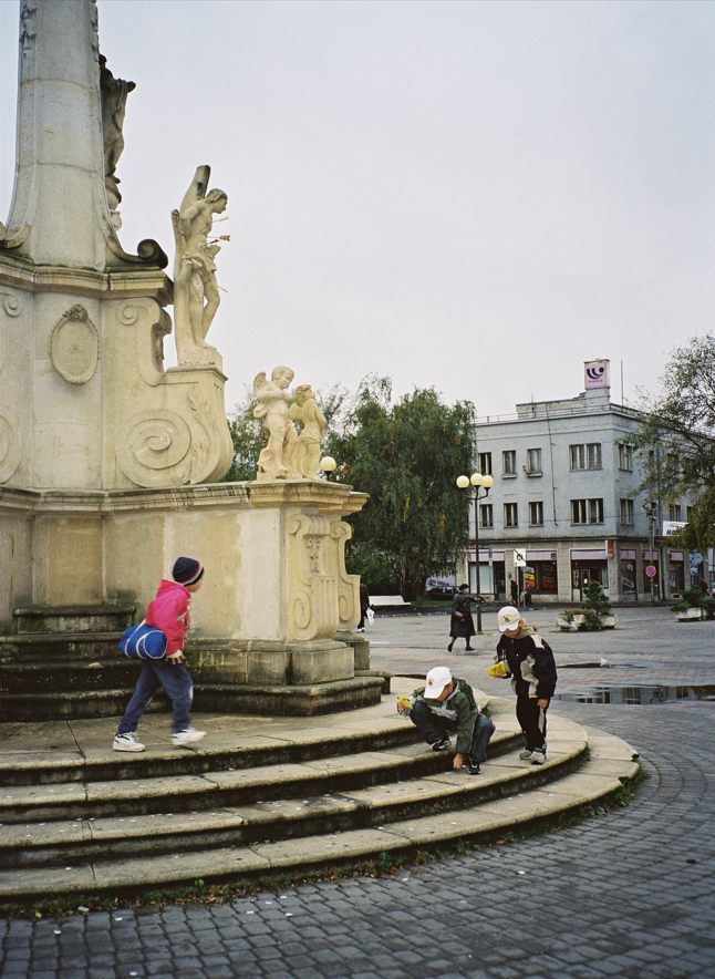 BEGGARS BANQUET. Retrospective of public momental actions. First show them, then smash them. Ongoing series. Trans Art Communication. Nove Zamky SK 2002. Photos: Watan Wuma.